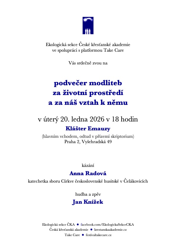 - Podvečer modliteb za životní prostředí – 20. 1. 2026 v 18 hod., Klášter Emauzy